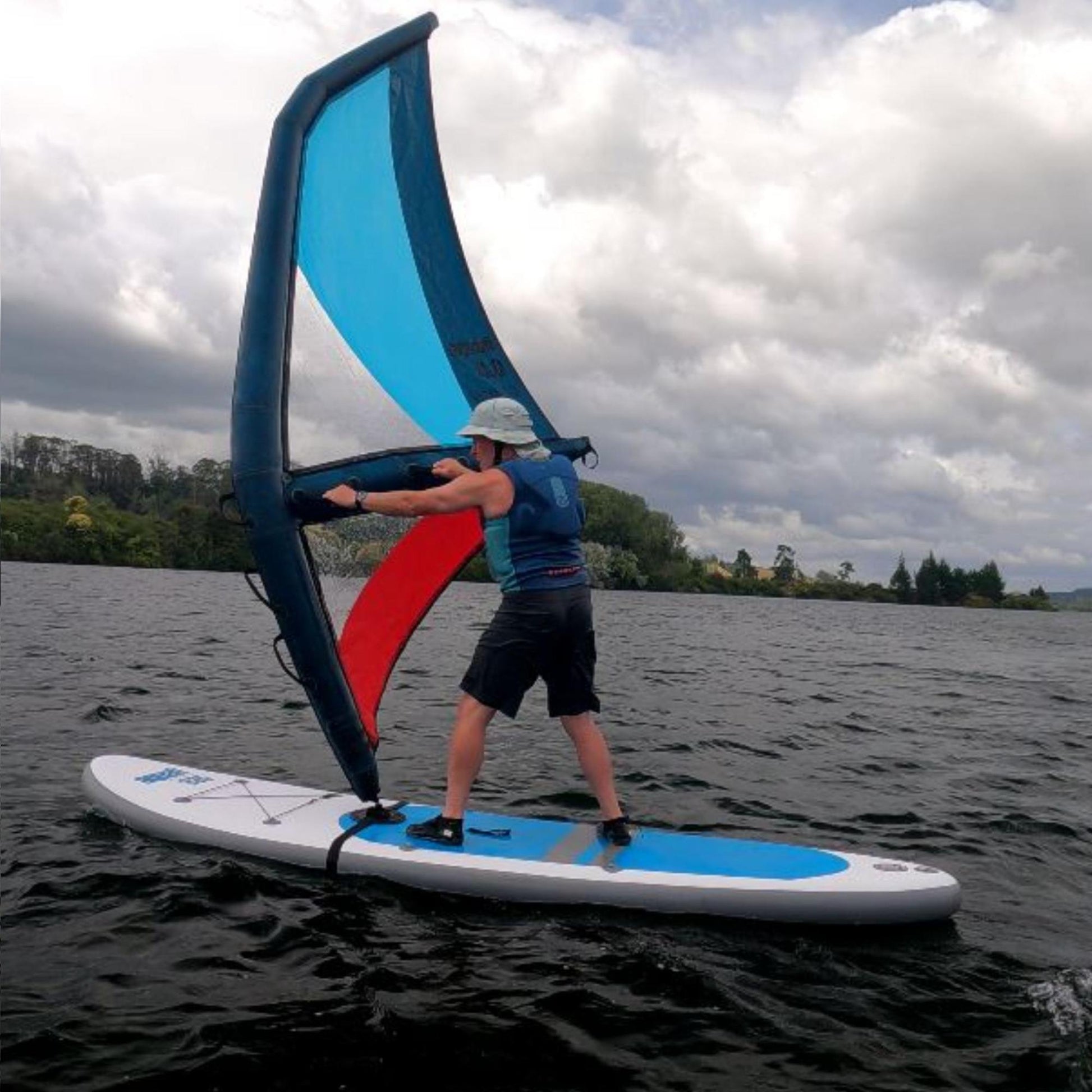 CAUTION - Endless fun can be had, but the sail should only be used when the wind is blowing towards the shore. Safety is our paramount concern and you should always use a personal flotation device while using a SUP. It is also recommended that you take the paddle with you when first attempting to sail your paddle board, otherwise its a long swim back to shore towing your board and sail!
